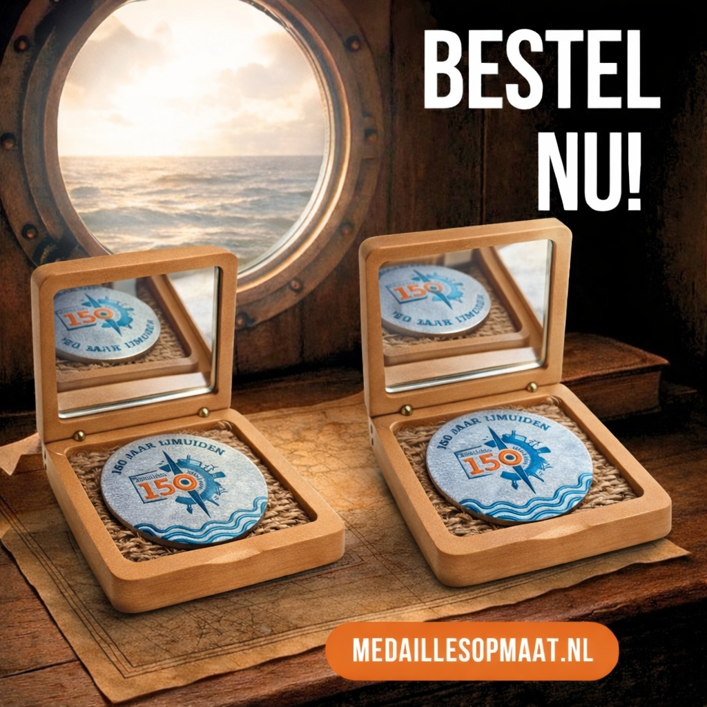 Speciaal voor deze gelegenheid zijn er exclusieve houten medailles en metalen penningen ontworpen door medaillesopmaat.nl. Een tastbare herinnering aan 150 jaar trots, gemaakt met oog voor detail, perfect als cadeau of verzamelobject. Een bijzonder cadeau voor jezelf of een ander.